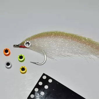Diamond Fish Eyes eru hönnuð og framleidd í Danmörku frá upphafi til enda, með áherslu á gæði og endingargóða hönnun. Þessi flúrljómandi fiskiaugu úr fasettuðu plasti endurvarpa miklu ljósi og skapa áberandi fókuspunkt á flugunni – sem getur jafnvel dregið úr tökum í sporðinn.