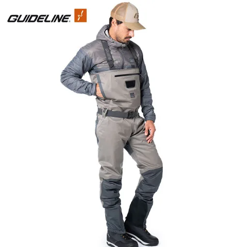 Guideline Driva vöðlurnar eru hannaðar fyrir veiðimenn sem vilja léttar, þægilegar og slitsterkar vöðlur fyrir virka daga við vatnið. Þær eru framleiddar úr endurunnu polyester efni sem sameinar mýkt, endingu og góða öndun, og henta því vel bæði í kaldari og hlýrri aðstæðum.