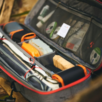 Taskan tekur allt að sex einhendur eða fjórar tvíhendur, auk fluguhjóla, fluguboxa og annarra fylgihluta. Innan á lokinu eru þrír netvasar með rennilásum í mismunandi stærðum fyrir smærri hluti. Í stangarhólfinu eru einnig tvö stillanleg teygjubönd sem halda stöngunum tryggilega á sínum stað.