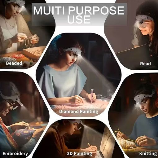 - Fyrir alla nákvæmnisvinnu: Fluguhnýtingar, saumaskap, lestur, skartgripasmíði, lím- og smíðavinnu, klukkviðgerðir, módelbyggingu, rafmagnsvinnu og fleira.