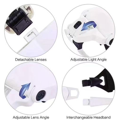 Þessi hönnun sameinar orkusparandi LED-ljós, margvíslega stækkun ( 1X–3.5X stækkun ) og létta, ergónómíska höfuðfestingu sem gerir þér kleift að hafa báðar hendur frjálsar á meðan þú vinnur.