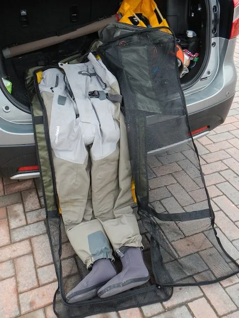 Nýstárleg og algerlega frábær lausn til að flytja og geyma öndunarvöðlur, vöðluskó og í raun allan blautan fatnað (öll blotnum við einhverntíman).